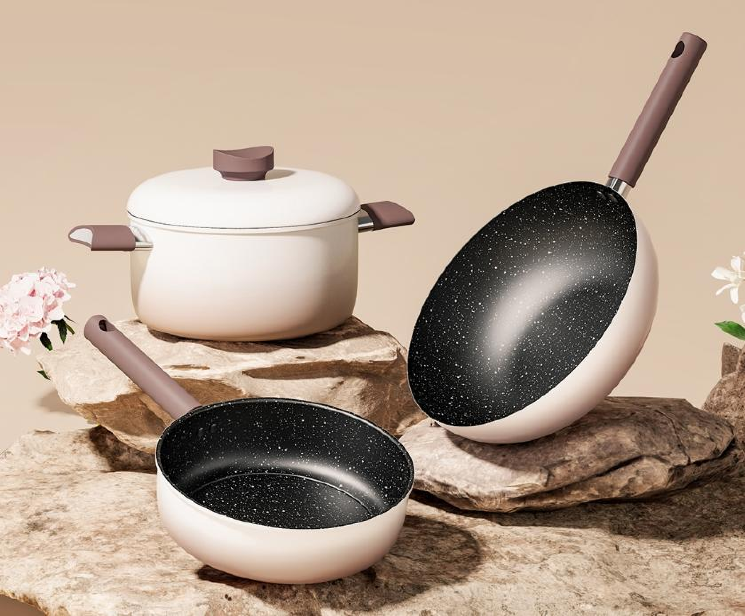 德铂/Debo DEP-949 炒锅 卡布奇诺三件套 (套装锅)