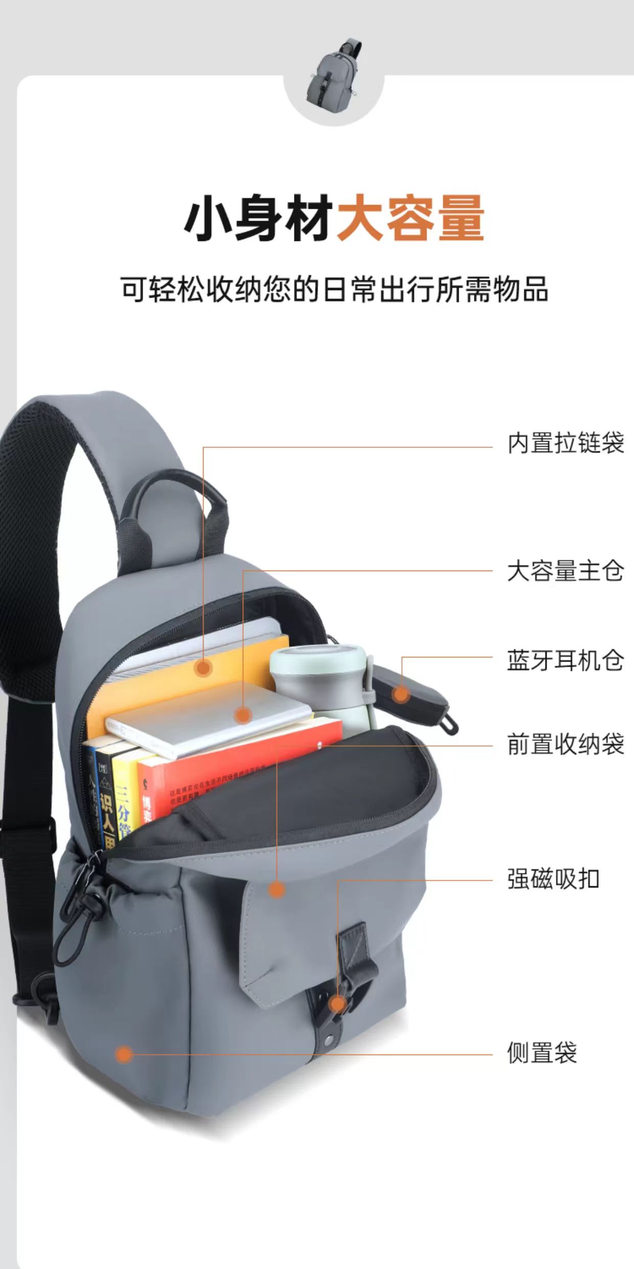 内部设有储物小袋,收纳更合理。轻盛包身,减负出行。