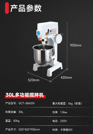 重量:82kg;最大和面量:5kg(软面);食品接触部位是不锈钢201