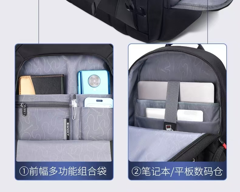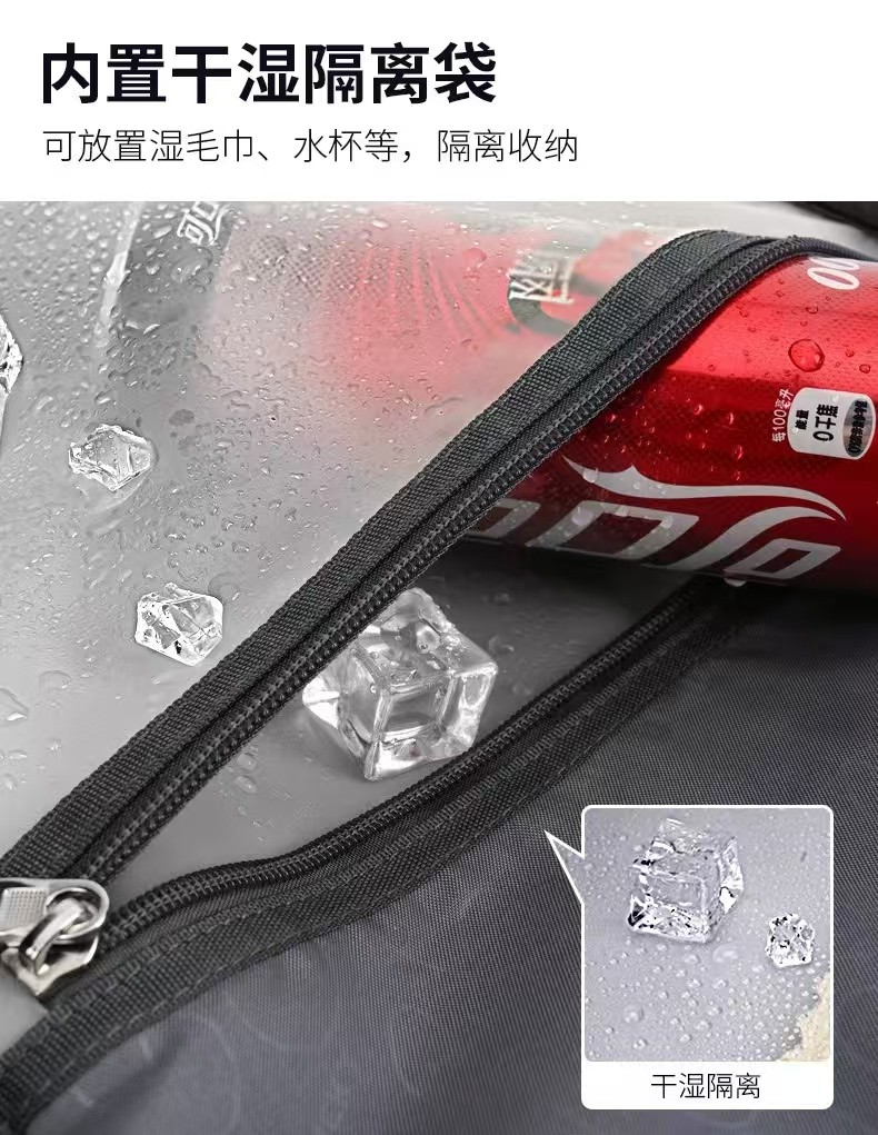 2.内置电脑隔层,干湿分离收纳仓,文具收纳组,大容量衣物主袋