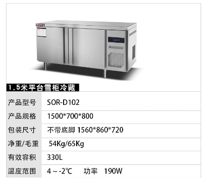 松润/SOR SOR-D102 冷藏柜 1.5米冷藏工作台商用操作台卧式冰箱雪柜冰箱冷柜